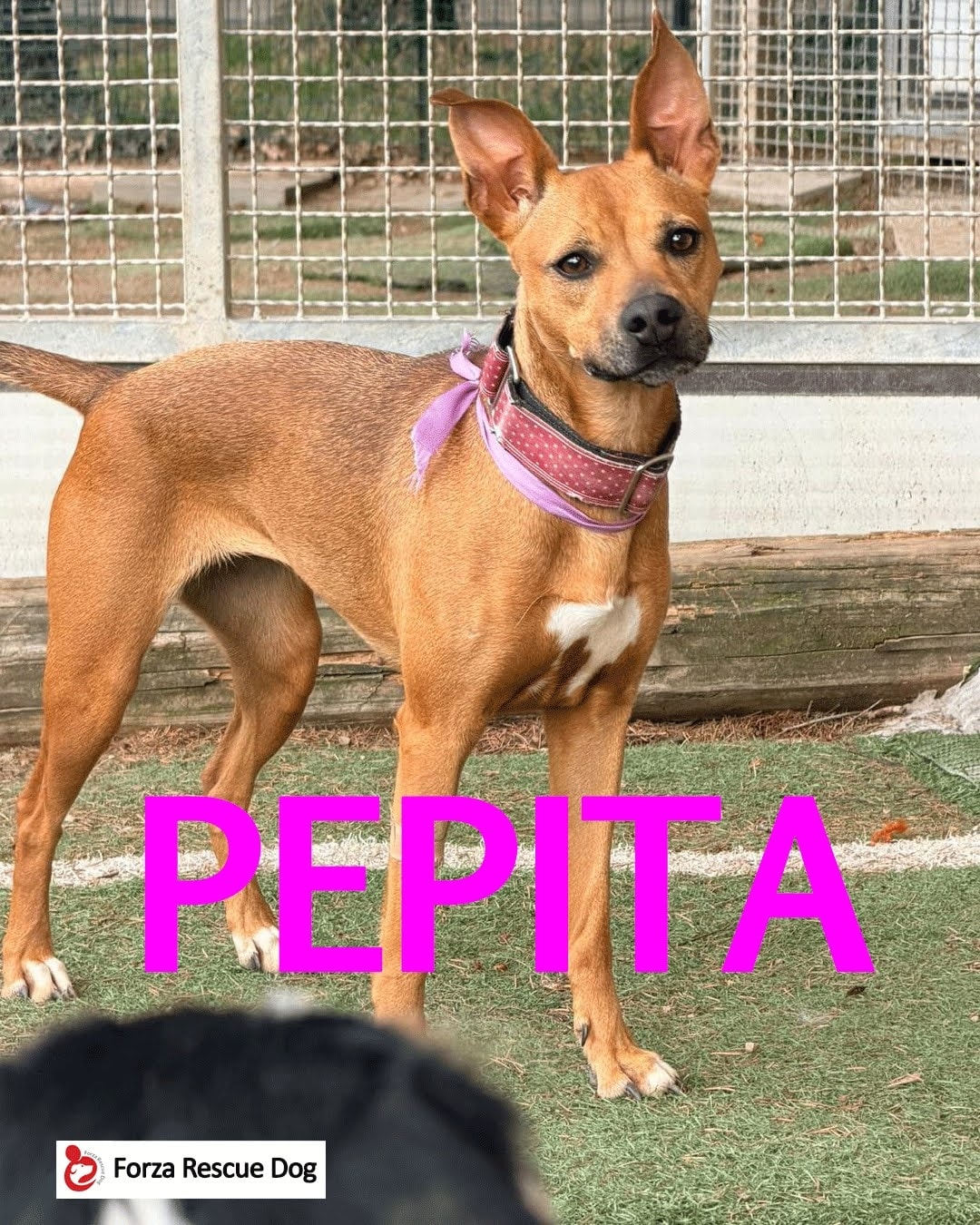 PEPITA è una giovane meticcia femmina di un anno e mezzo circa e pesa 13 kg. Anche lei come Niko, Kira e Aki è stata recuperata a Palos de la Frontera dove viveva rinchiusa in una gabbia nel centro rifiuti… non avendo una perrera il comune mette i cani lì