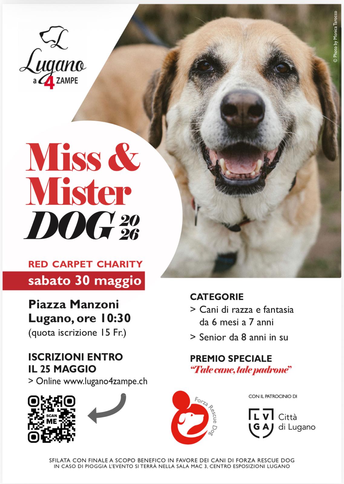 Quest’anno il Red Carpet sarà ancora più speciale: sarà infatti l’unico appuntamento per eleggere i nostri Miss & Mister Dog, poiché l’evento di settembre Lugano a 4 Zampe non potrà svolgersi, ma ci rifaremo con una spumeggiante edizione 2027!